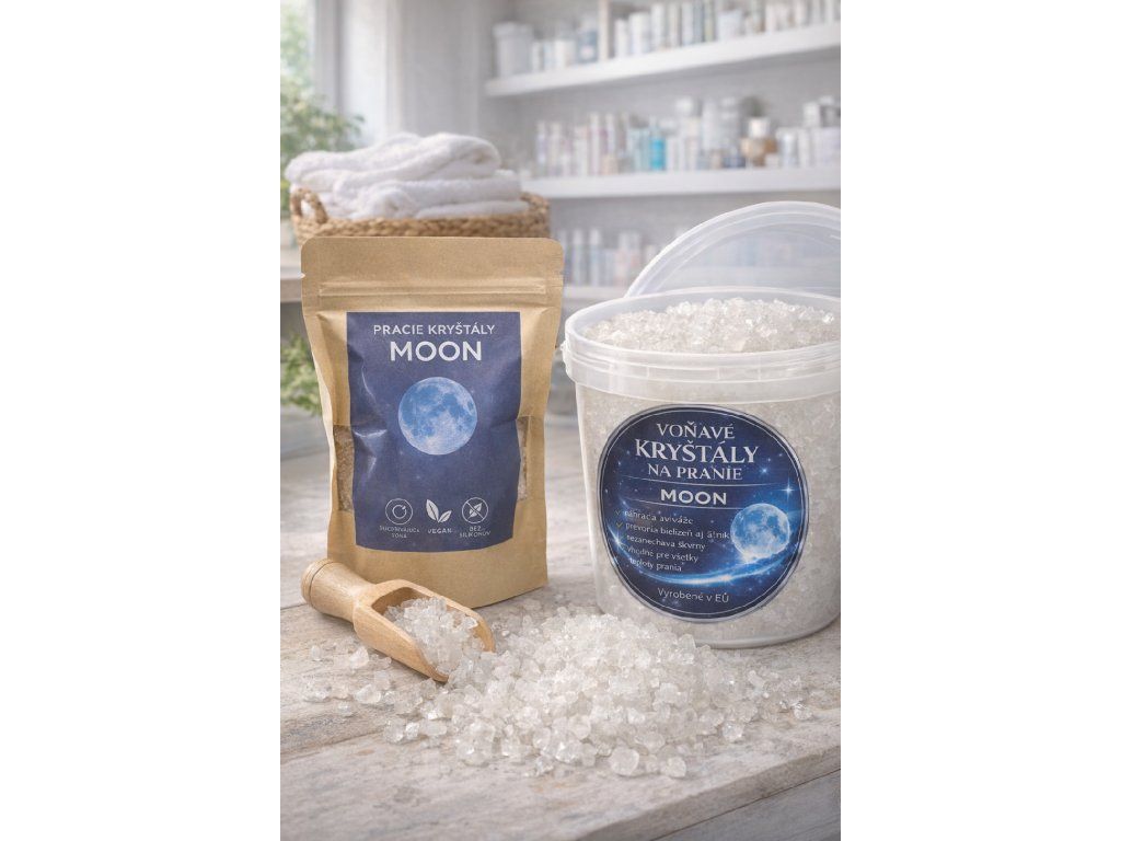 Parfumované kryštály MOON sa počas prania postupne rozpúšťajú a uvoľňujú intenzívnu a sviežu vôňu, ktorá preniká hlboko do vlákien bielizne.